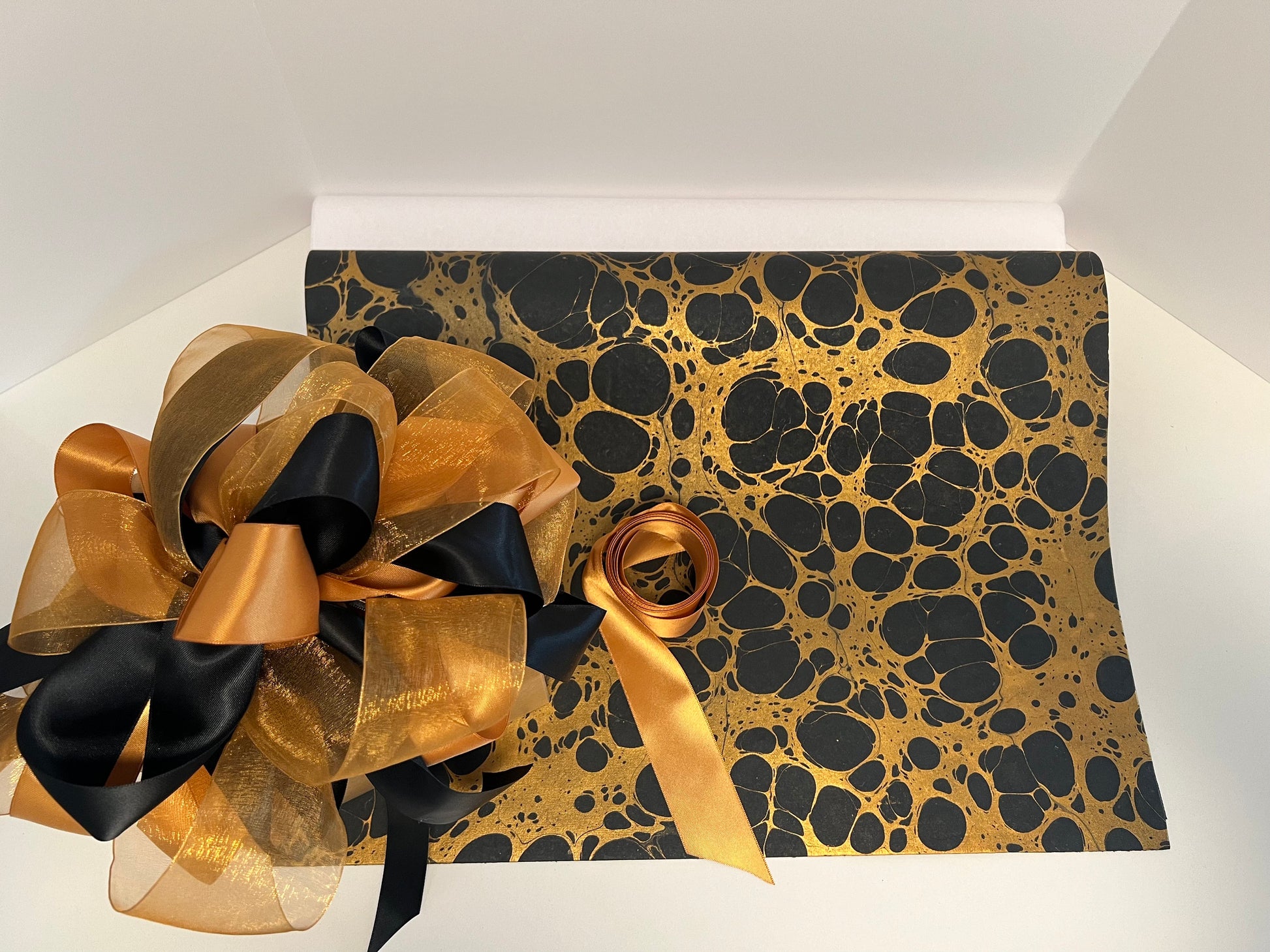 Luxury weight artisan paper gift wrapping kit. Set your gift apart from all of the others! Original artist designs on recycled paper, unique and whimsical. Set comes with 1 recycled Kraft paper gift box (**assorted sizes are available), white tissue paper, 1 sheet of wrapping paper, coordinating satin ribbon and a handmade satin and organza bow, and of course, crown+branch signature seals. A coordinating petite blank card and envelope is also included.